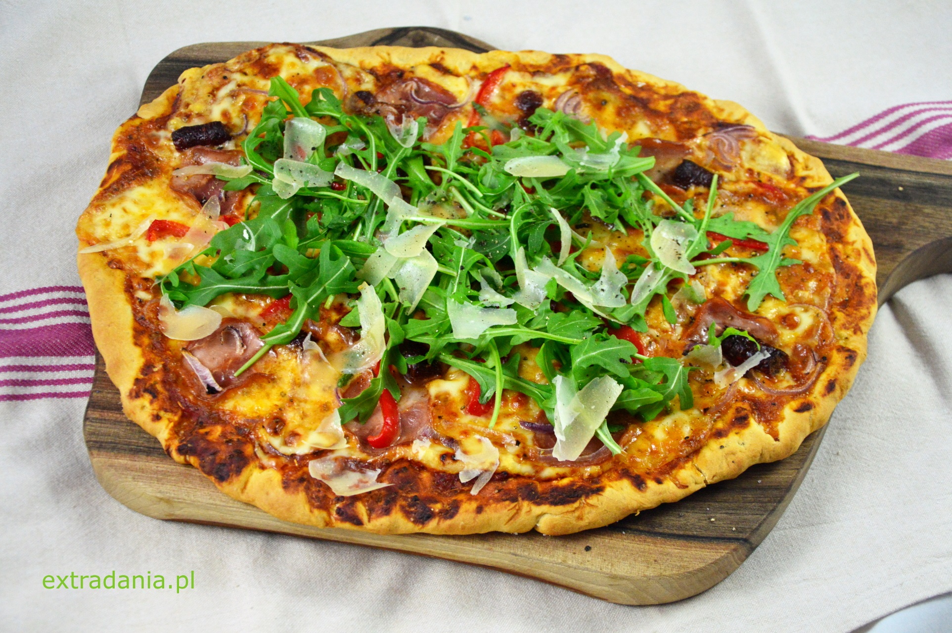 22 listopada 201722 listopada 2017Przepisy[Przepis] Pizza z szynką, kabanosem, papryką i czerwoną cebulą