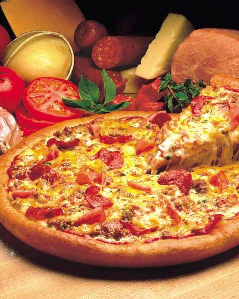 Do mąki dodać drożdże, szczyptę cukru, bazylię, sól i paprykę, dolać olej i ciepła wodę, zagnieść gładkie ciasto i odstawić do wyrośnięcia. Kiedy ciasto wyrośnie podzielić je na 8 porcji i uformować z nich placuszki około 1,5 cm grubości po wierzchu posmarować cienką warstwą keczupu, mięso obrać z kości i ułożyć na cieście, następnie położyć plaster sera i pomidora pokrojonego na cząstki. Cebule pokroić na piórka i ułożyć je na wierzchu bułeczek na koniec posypać przyprawą i odstawić na około 30 minut do podrośnięcia. Piec w temp. 200 st około 15-18 minut.