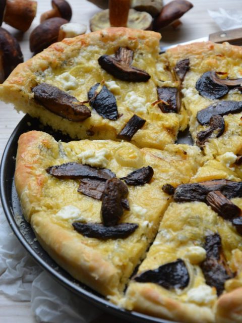 Na ciasto smarujemy powidła śliwkowe zmieszane z odrobiną musztardy. Buraki kroimy w cienkie plastry lub paski, doprawiamy solą i pieprzem. Do farszu dodajemy posiekane orzechy. Całość wykładamy na powidła i pieczemy przez ok. 15 minut. Gotową pizzę ozdabiamy świeżymi liśćmi botwiny lub szpinaku.