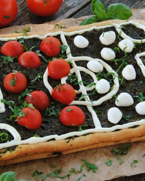 Po upieczeniu posypujemy ją listkami świeżej bazylii.