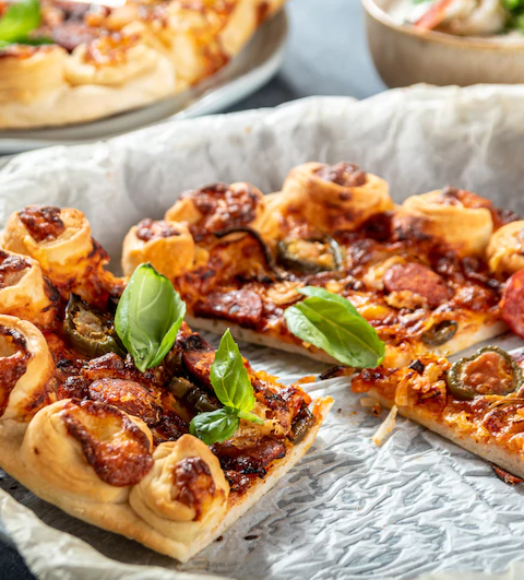 Ciasto do pizzy podzielić na 2 albo 3 części. Ja piekłam pizze na patelni żeliwnej i z podanych proporcji wyszły mi 3 pizze. Jak będziecie piec na większej blasze wyjdą Wam pewnie 2.